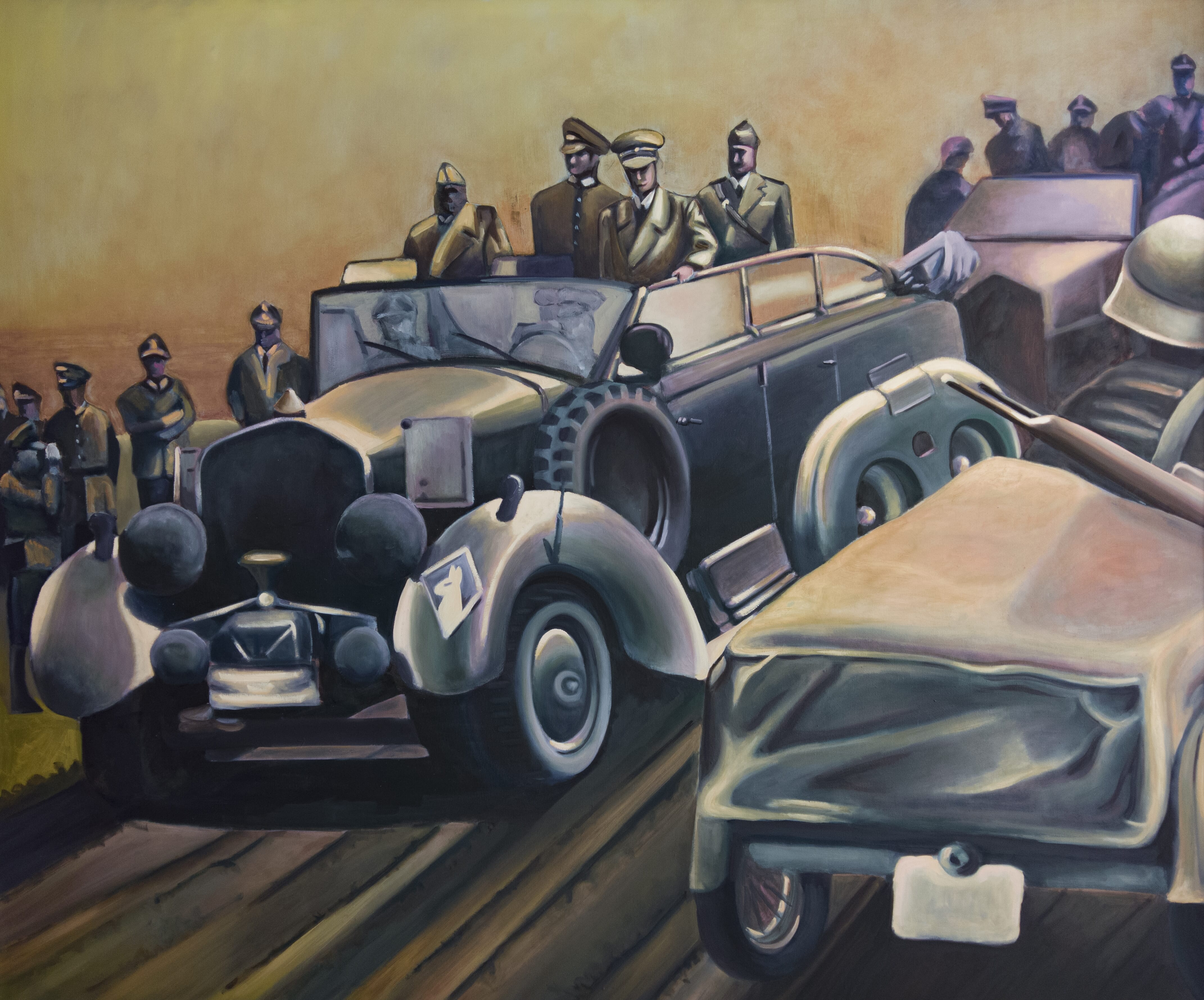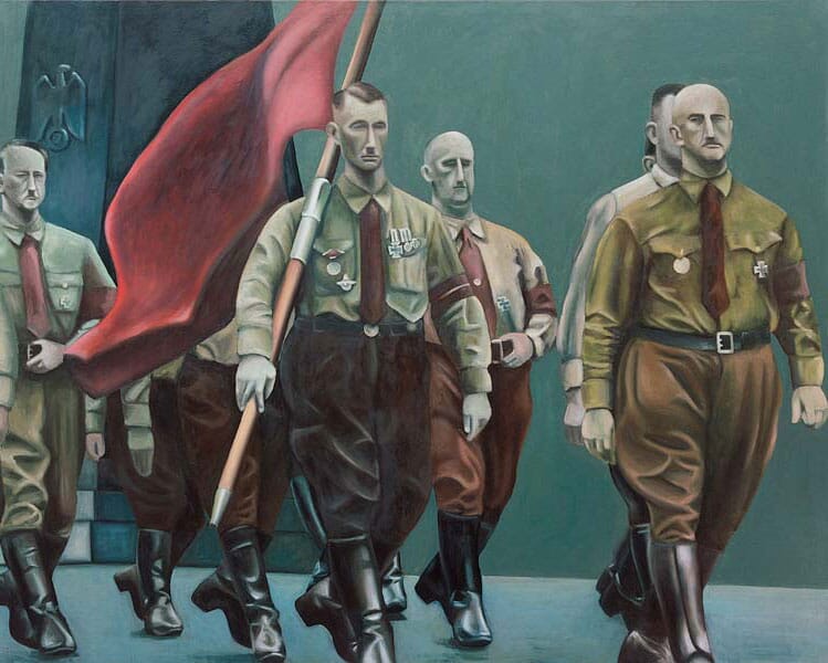 ![]() Aufmarsch, 200 x 250 cm, Öl auf Nessel, 2002 |