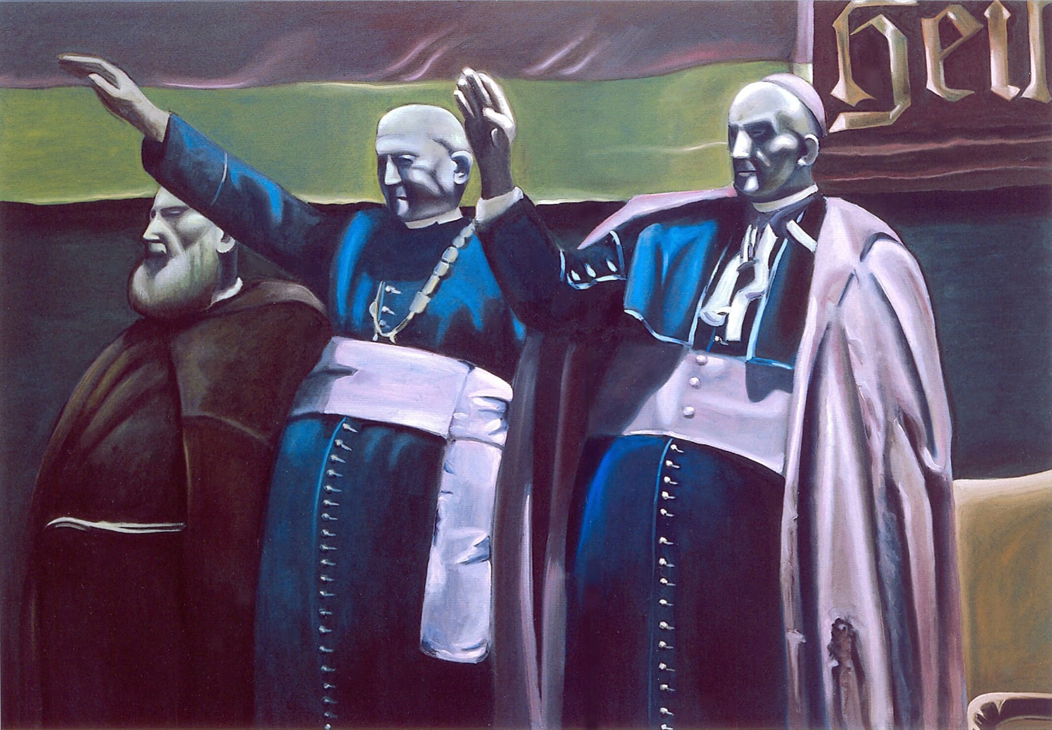 ![]() Bischofskonferenz, 150 x 180 cm, Öl auf Nessel, 2002 |